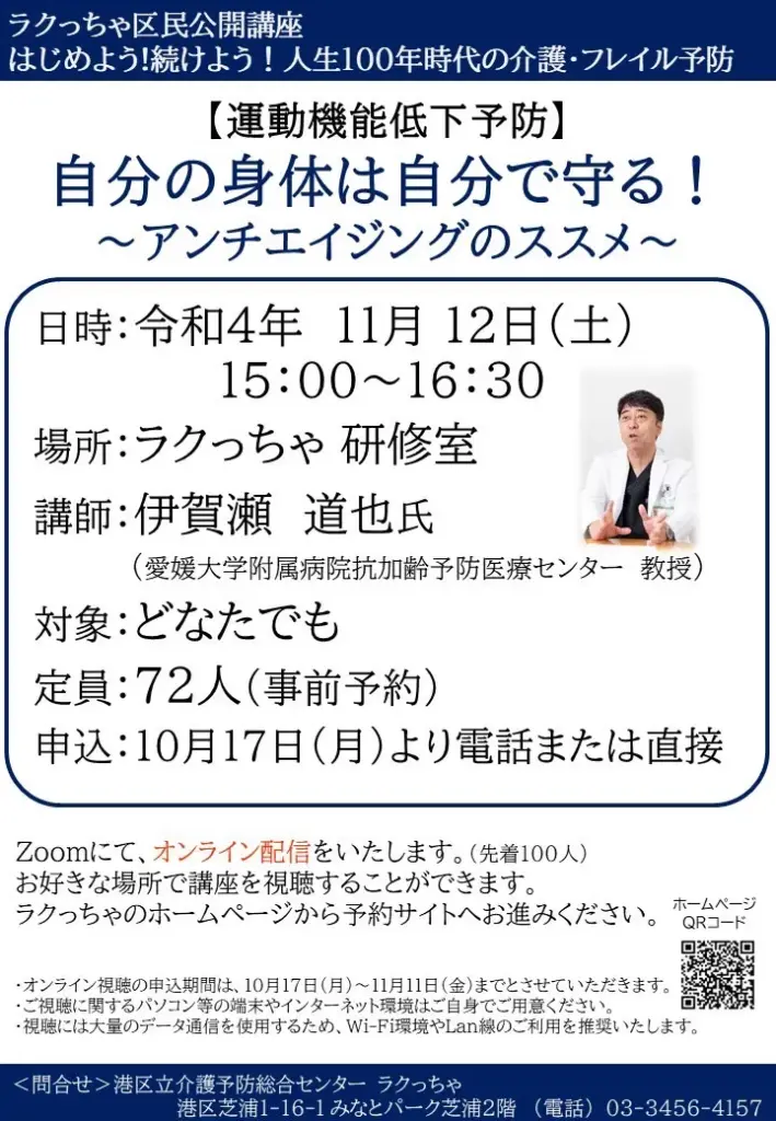 日本で初めて、国立大学医学部に専門の抗加齢医療センターを設立した老舗の愛媛大学医学部、現役教授でいらっしゃり、かつ、愛媛大学医学部抗加齢センター長でもいらっしゃる伊賀瀬道也教授が、大学病院で培った数十年に渡るデータと知識を基にお話をなさる、”本物のアンチエイジング医療”について学べる貴重な機会です❣️